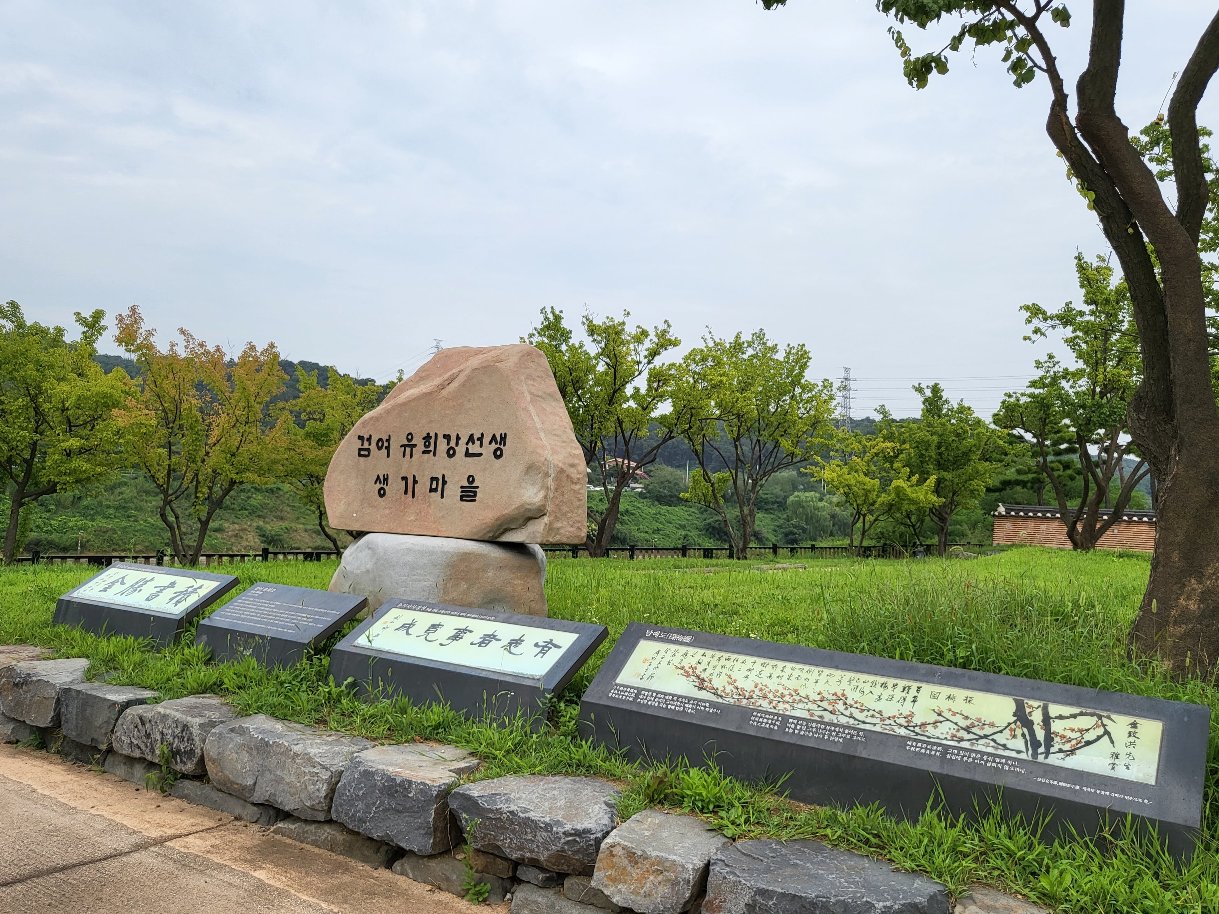 시의 여운을 뒤로하고 조금 더 들어가니, ‘검여 유희강선생 생가마을’이라는 매화동산 조성에 대한 유래가 적혀 있다. 매화동산은 검여 선생의 생가가 있던 마을로, 2011년 경인아라뱃길이 만들어지면서 그 역사적 흔적을 기념하기 위해 조성되었다고 한다.
